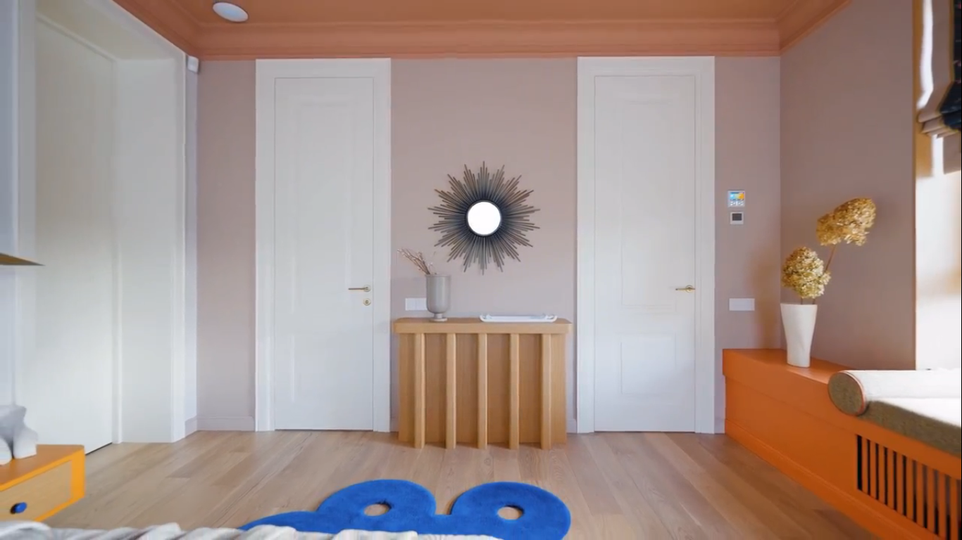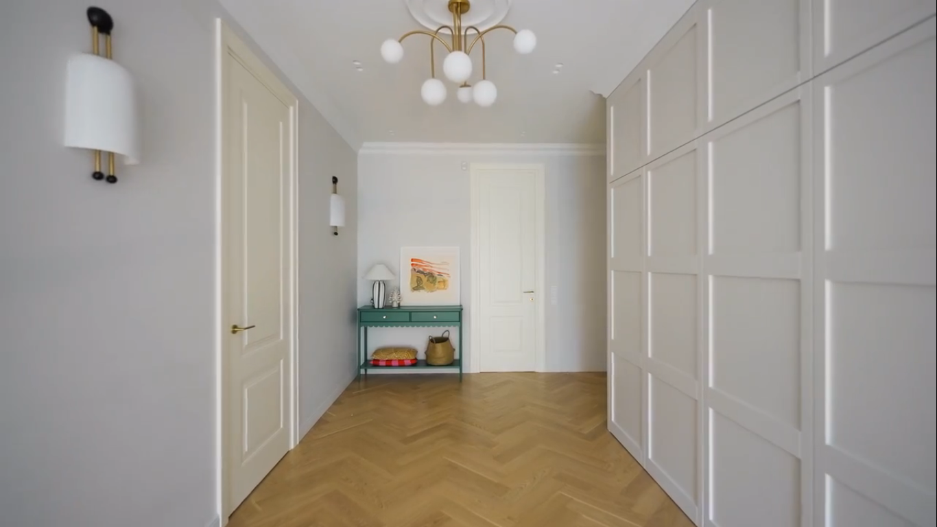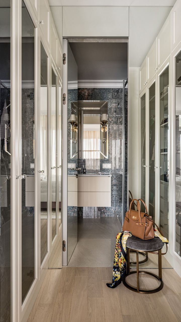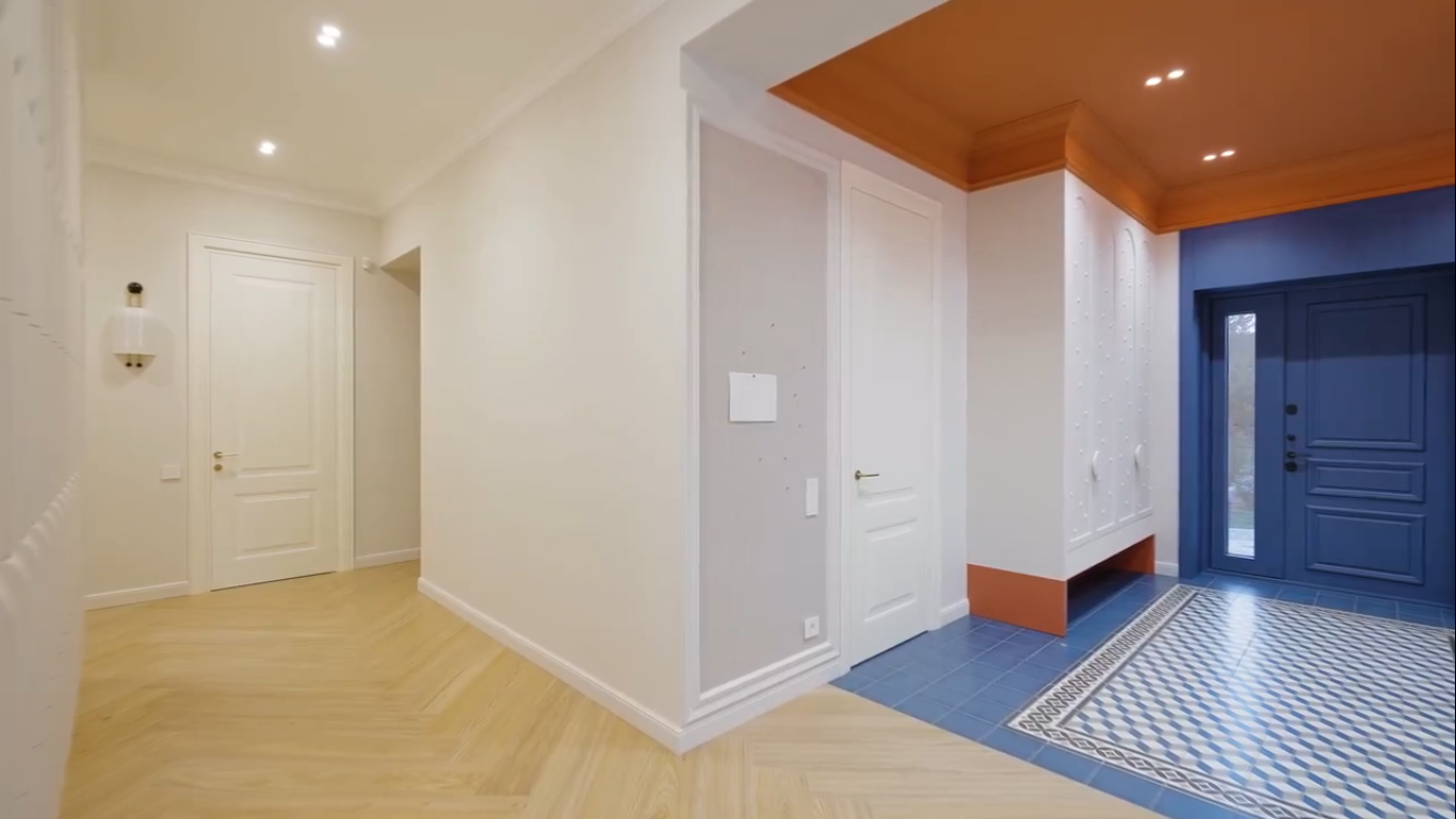 Классические двери высотой 2,5 метра—это не просто высота. Это заявление. Реверсивное открывание классических дверей в проекте невероятно красивого и функционального дома для семьи с двумя детьми. Дом двухэтажный, площадью 375 м².